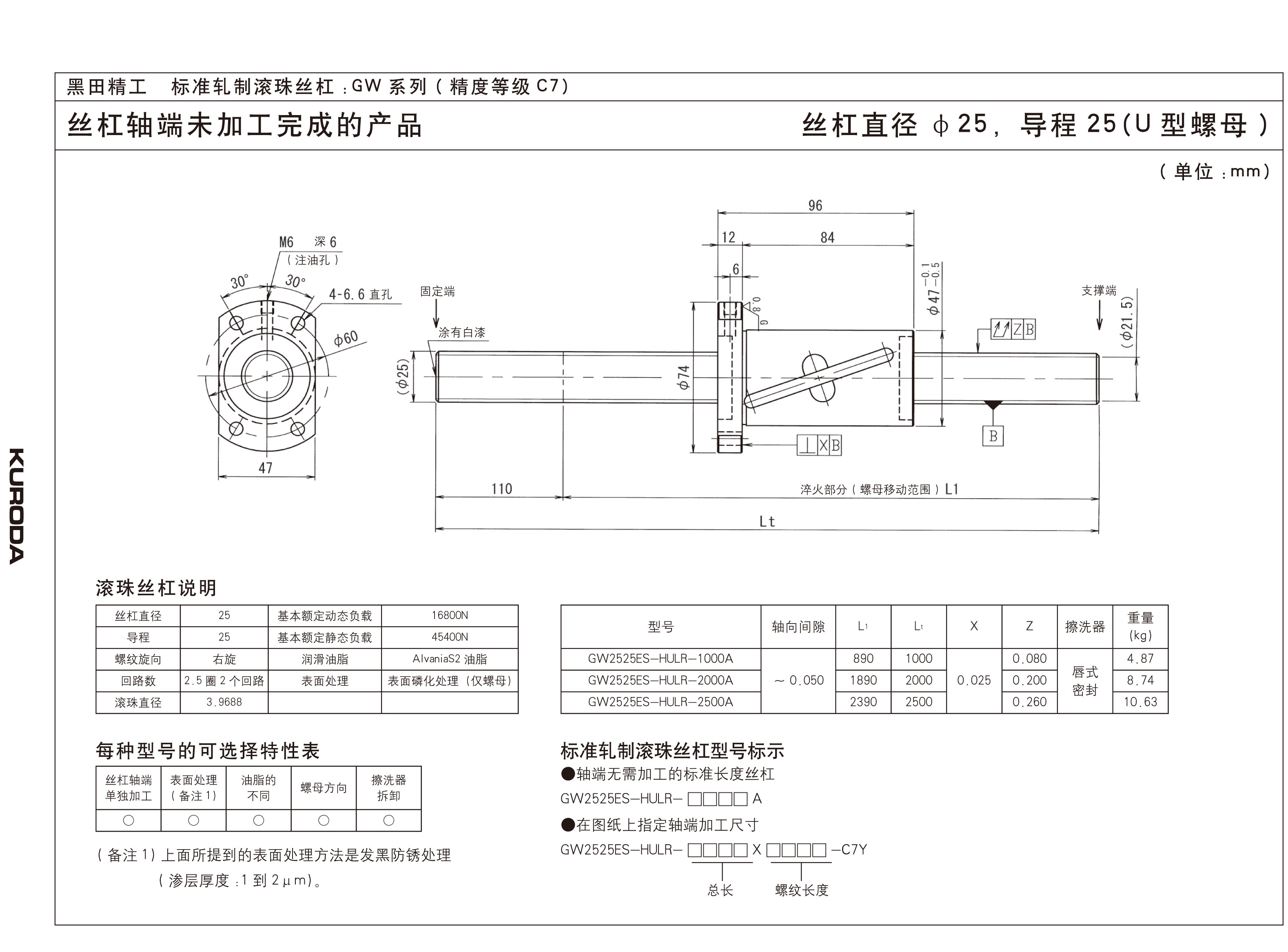 轧制滚珠丝杠具有较高的传动效率,所需力矩改为普通丝杠的1/3