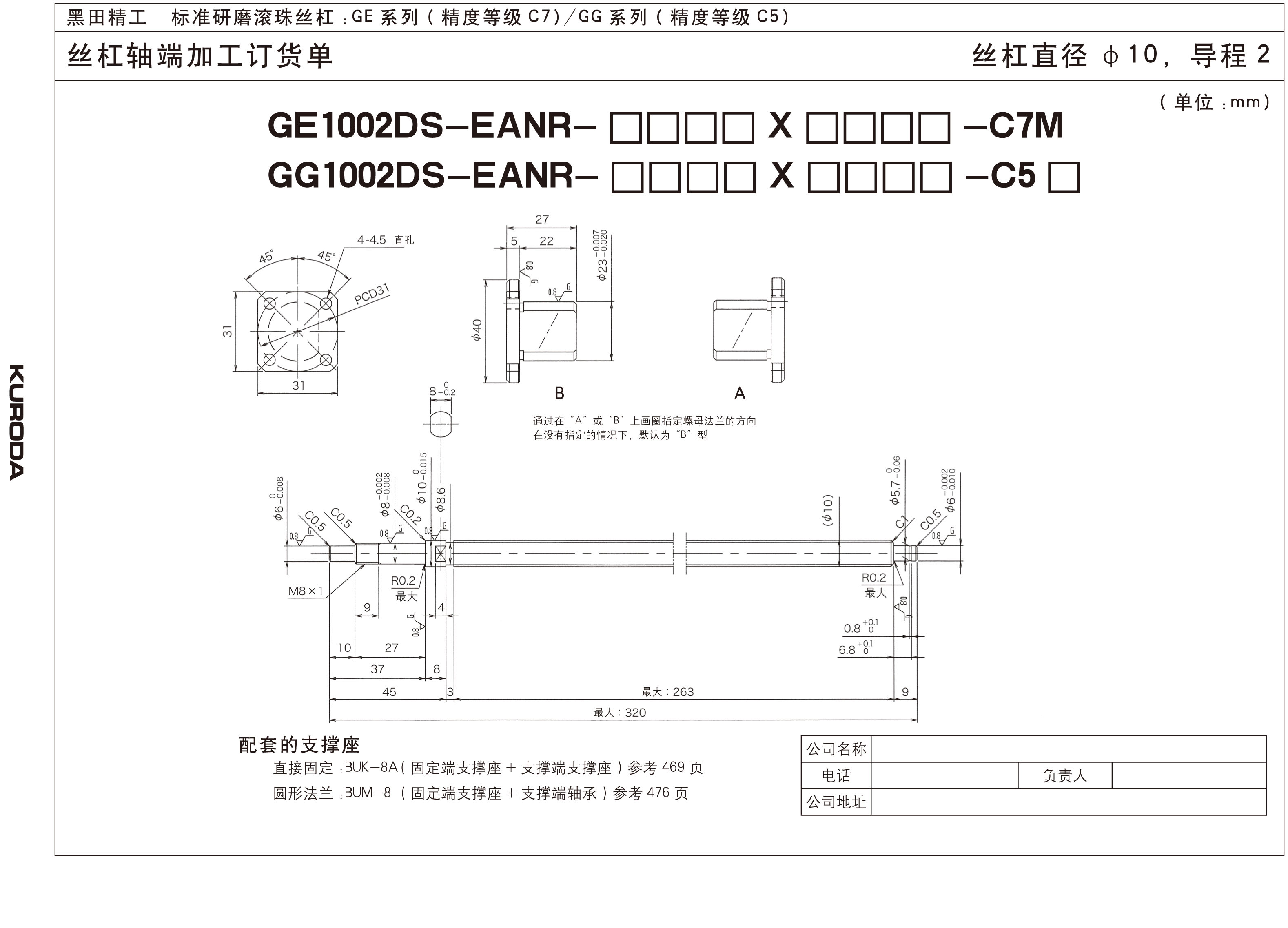 为防止滚珠丝杠因被污染而损伤,GE和GG系列(除了丝杠直径为8和10的)防尘滚珠丝杠都装有擦洗器,但是为了能更有效的防尘,可以安装相应的防护装置,如防尘罩和收缩盖