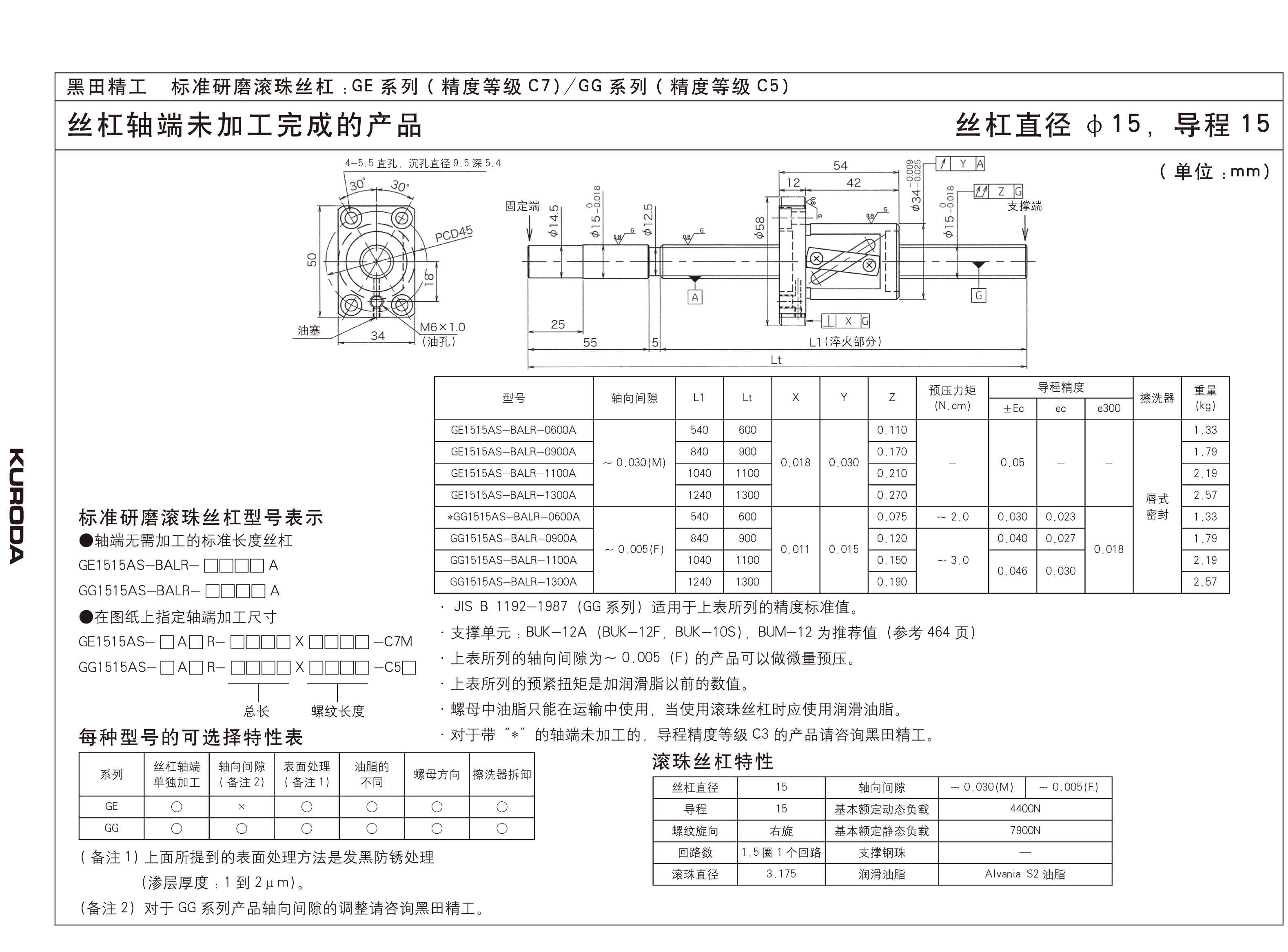 丝杆导程:15mm