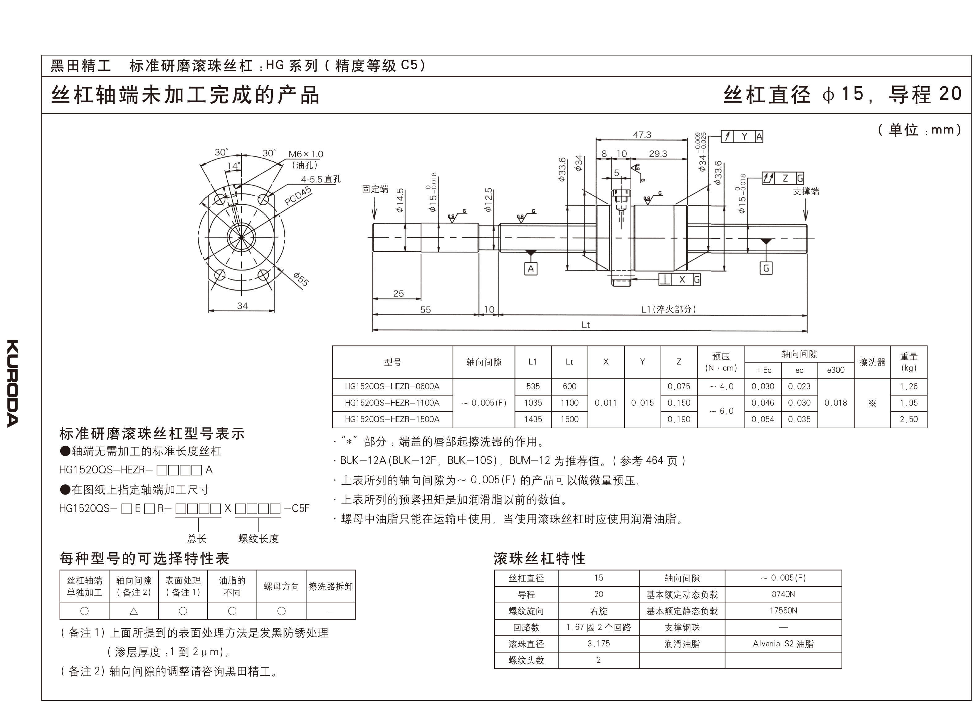 滚珠丝杠是滚动接触,在正常运行条件下,只需要定期地使用具有优秀防水性和抗热性的锂皂基油脂作为润滑脂,使用锭子油或汽轮机油(#90~#180)作为润滑油