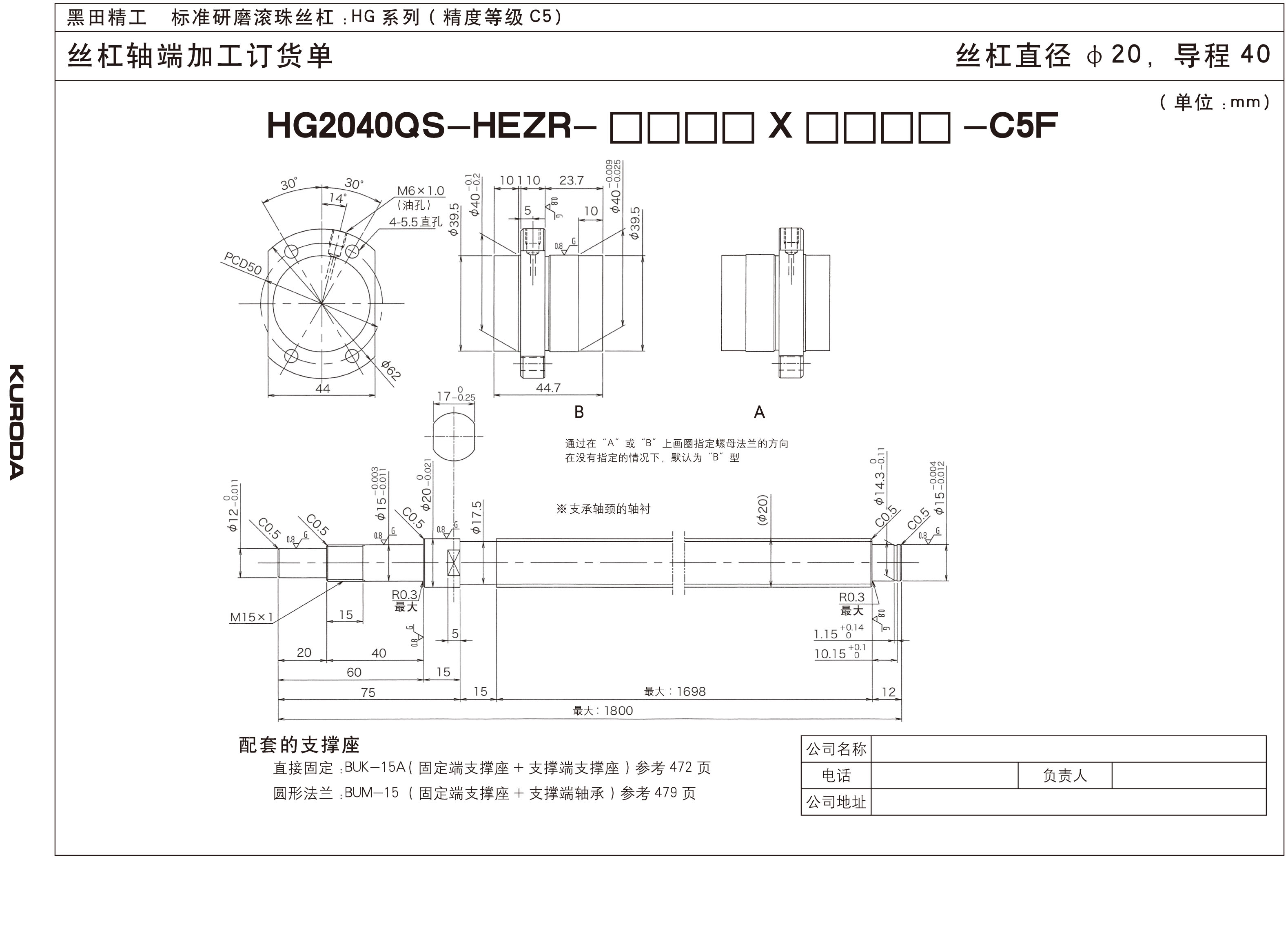 滚珠丝杠是滚动接触,在正常运行条件下,只需要定期地使用具有优秀防水性和抗热性的锂皂基油脂作为润滑脂,使用锭子油或汽轮机油(#90~#180)作为润滑油