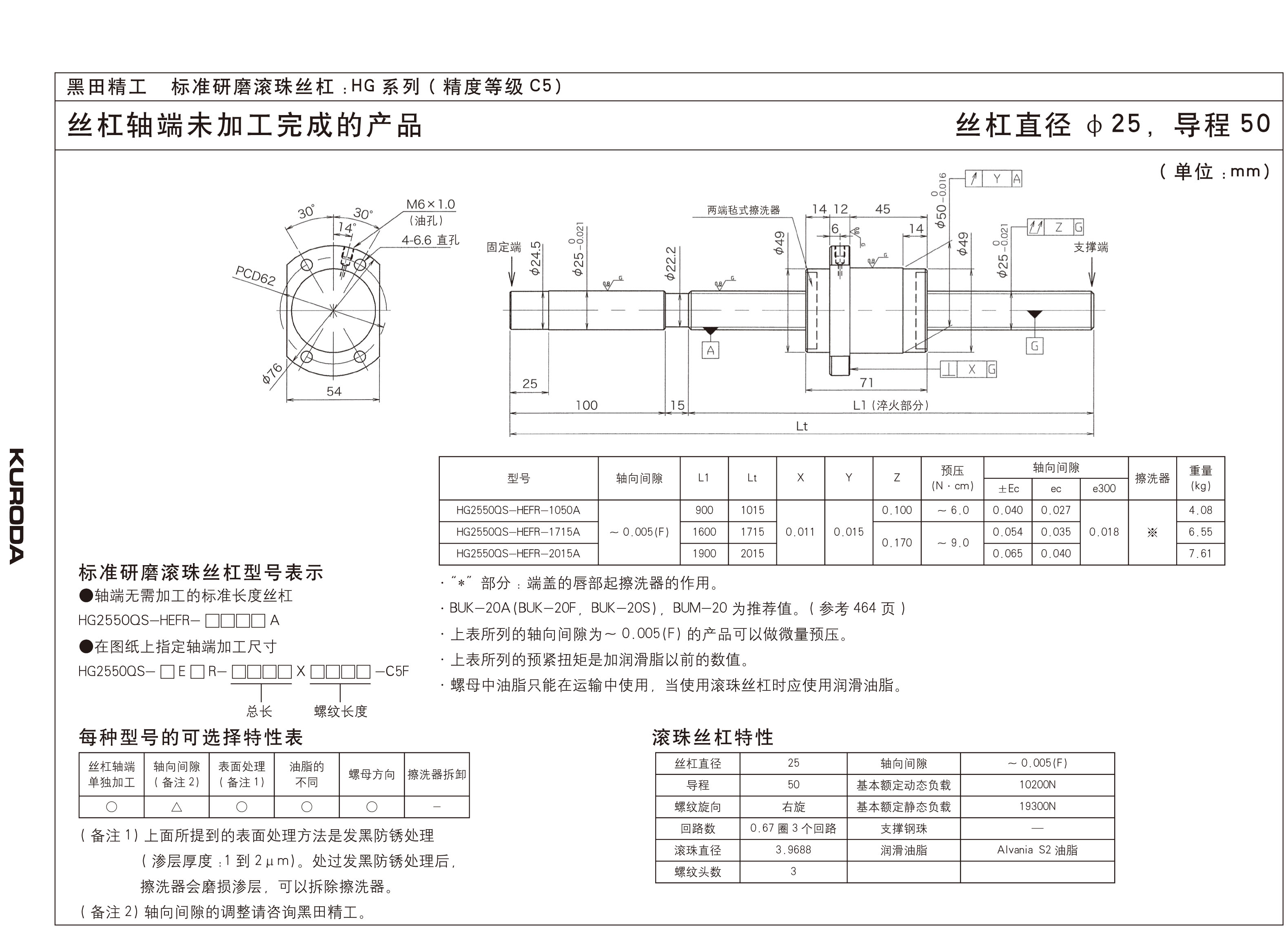 滚珠丝杠是滚动接触,在正常运行条件下,只需要定期地使用具有优秀防水性和抗热性的锂皂基油脂作为润滑脂,使用锭子油或汽轮机油(#90~#180)作为润滑油
