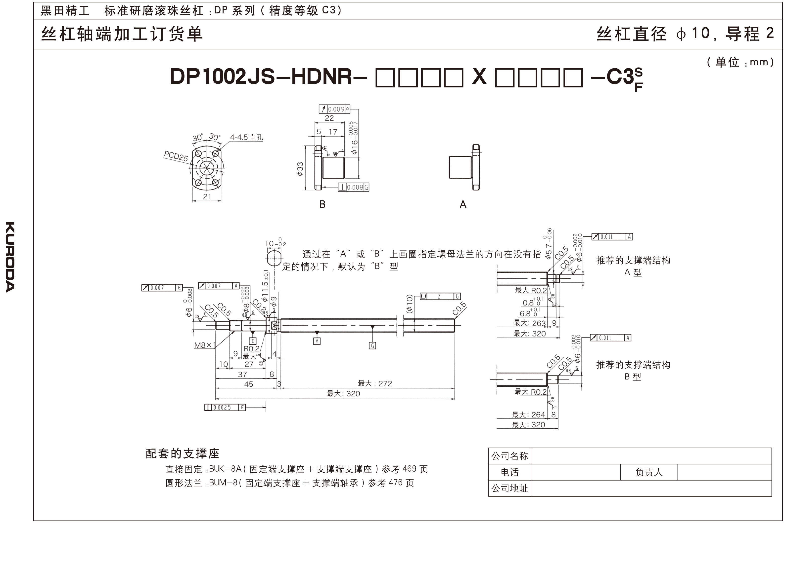在JIS C3等级中,轴向间隙为S(预压型号)轴向间隙为F(小于0.005)的型号系列可以实现高精度进给