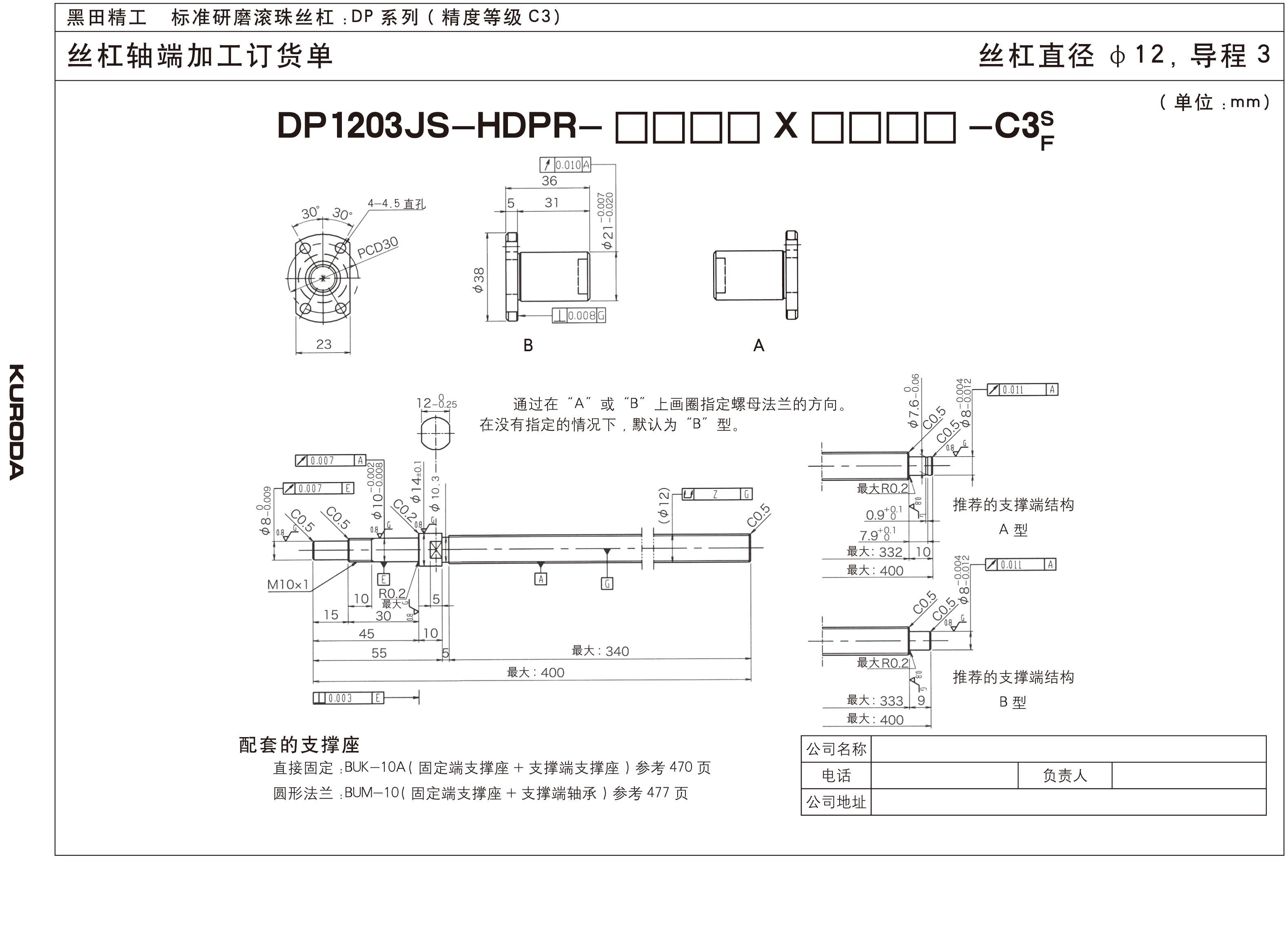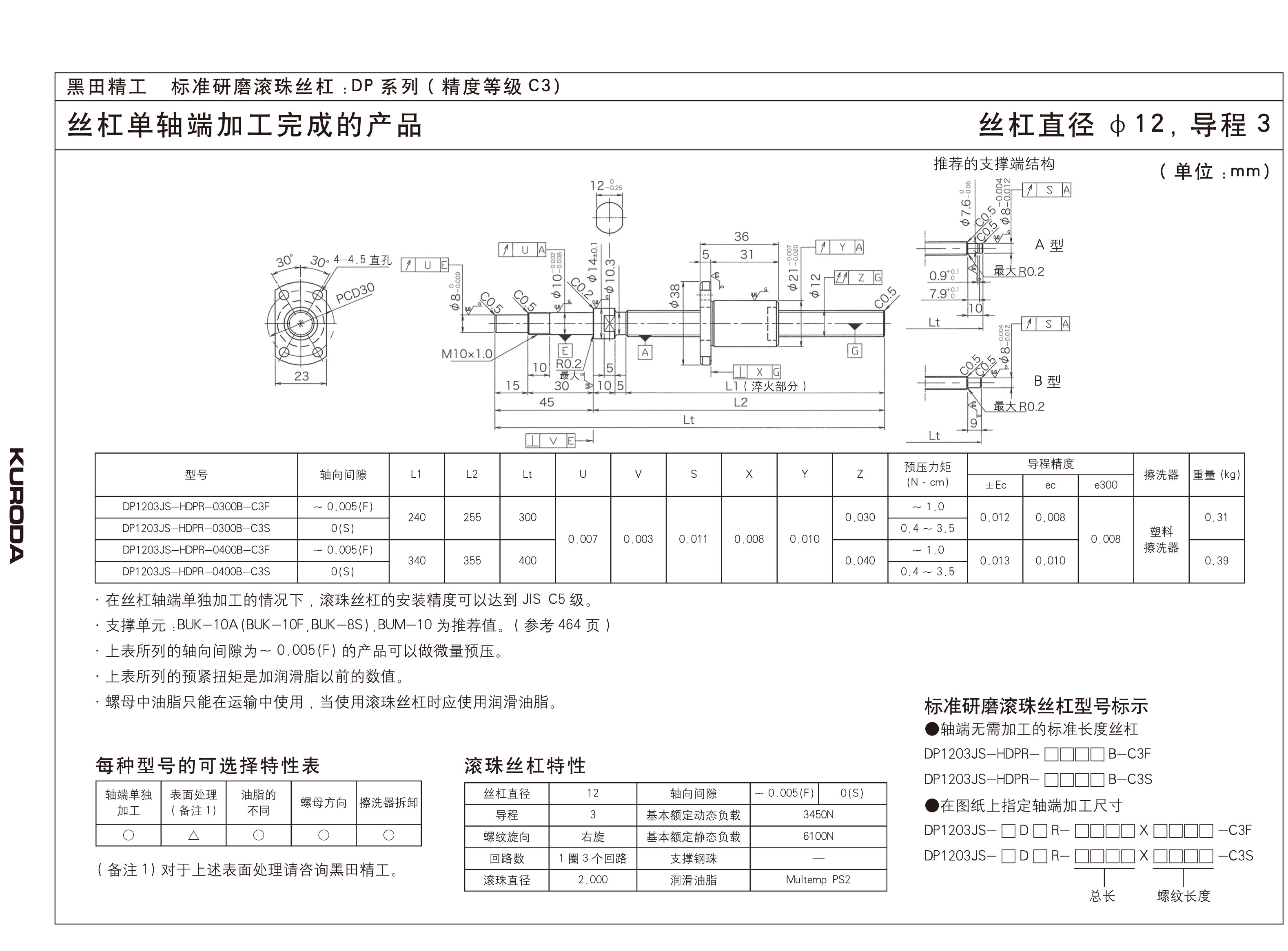在JIS C3等级中,轴向间隙为S(预压型号)轴向间隙为F(小于0.005)的型号系列可以实现高精度进给