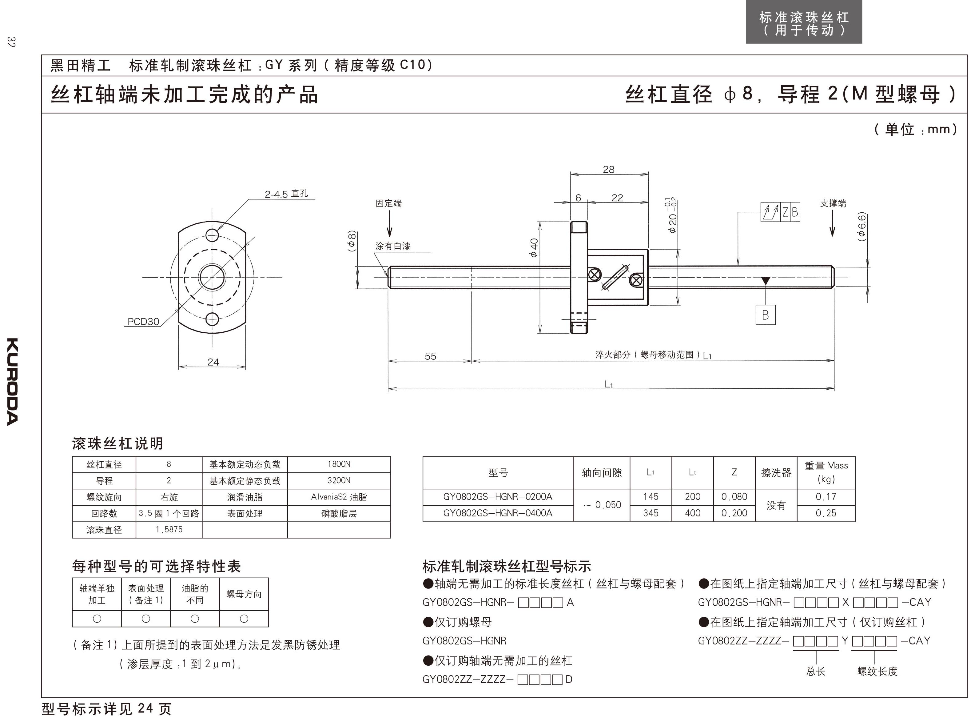 黑田精工滚珠丝杠拥有较高传动效率,在高速转动的情况下温升很小