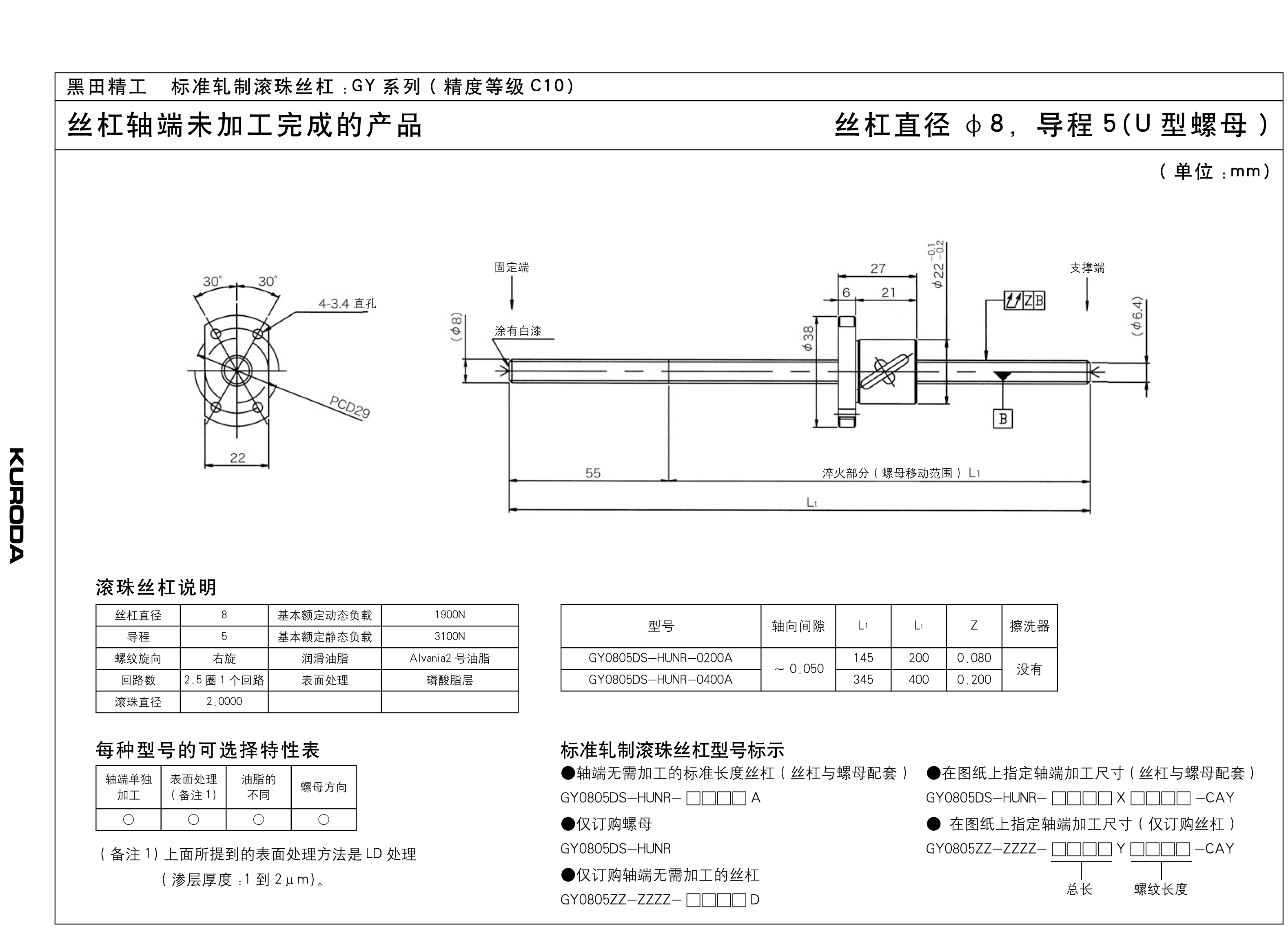 黑田精工滚珠丝杠拥有较高传动效率,在高速转动的情况下温升很小
