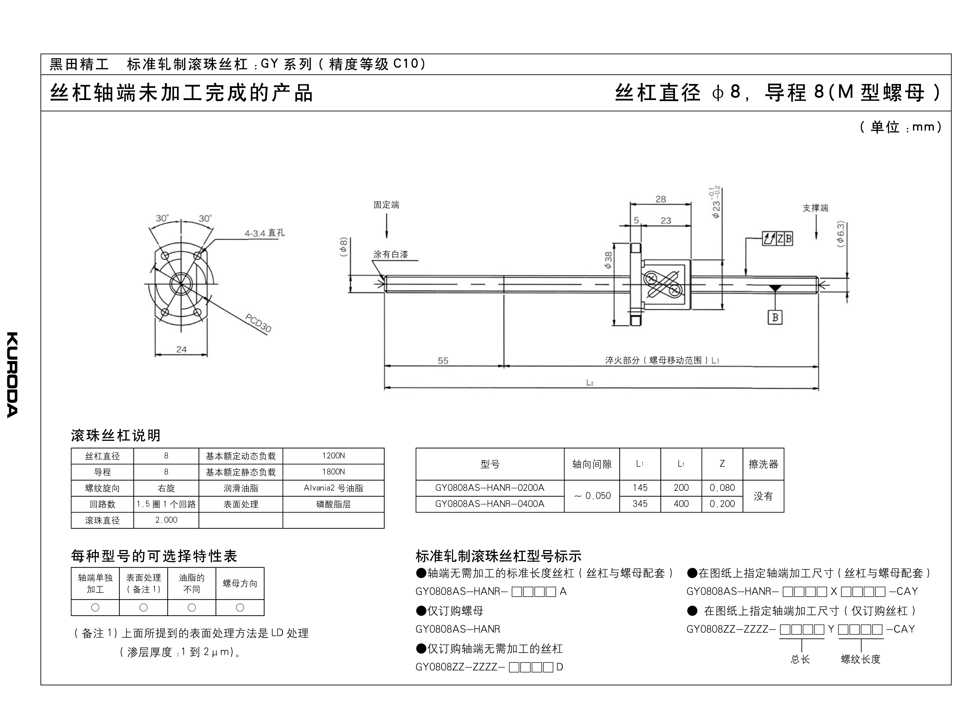 黑田精工滚珠丝杠拥有较高传动效率,在高速转动的情况下温升很小