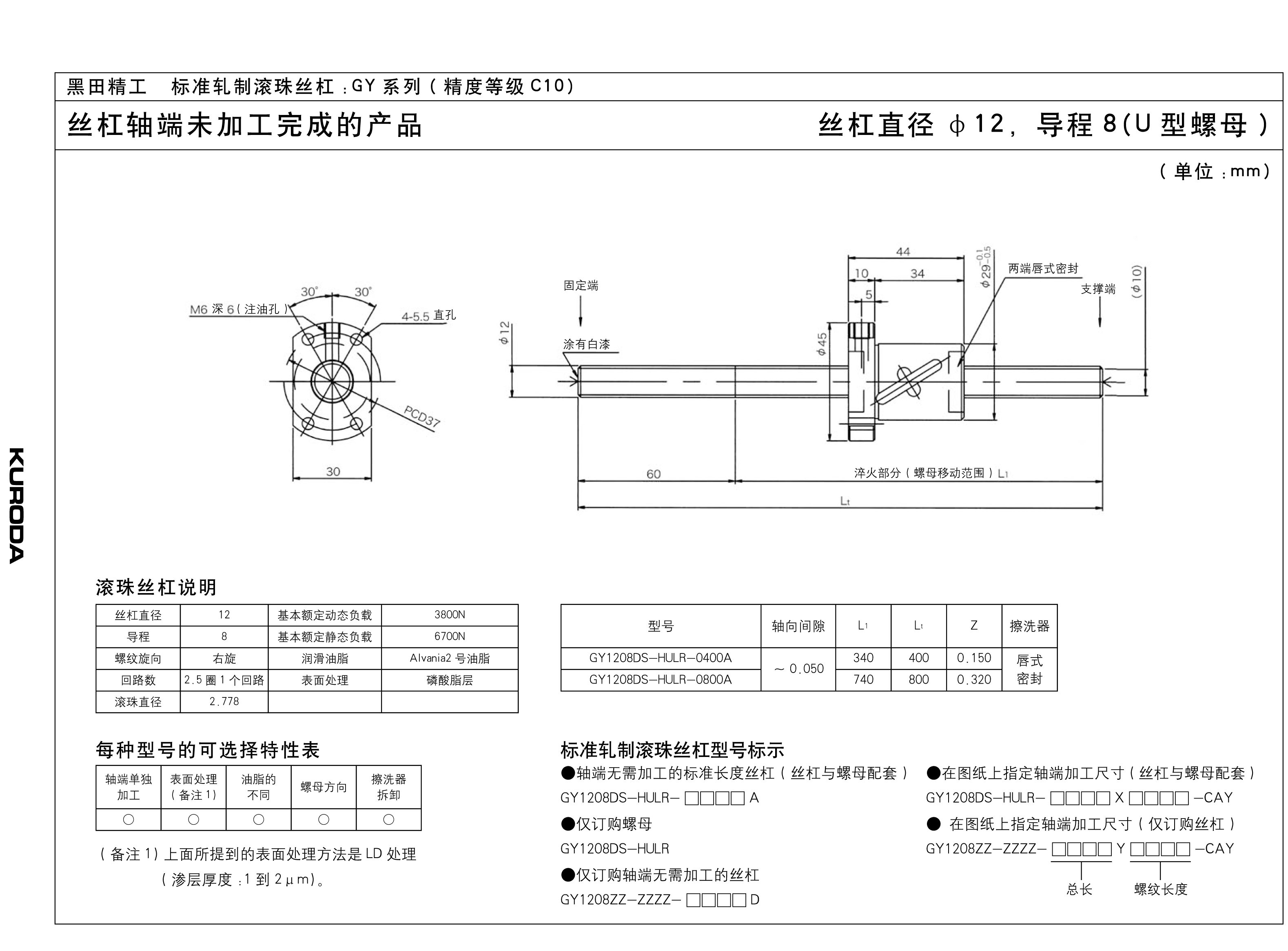 黑田精工滚珠丝杠拥有较高传动效率,在高速转动的情况下温升很小