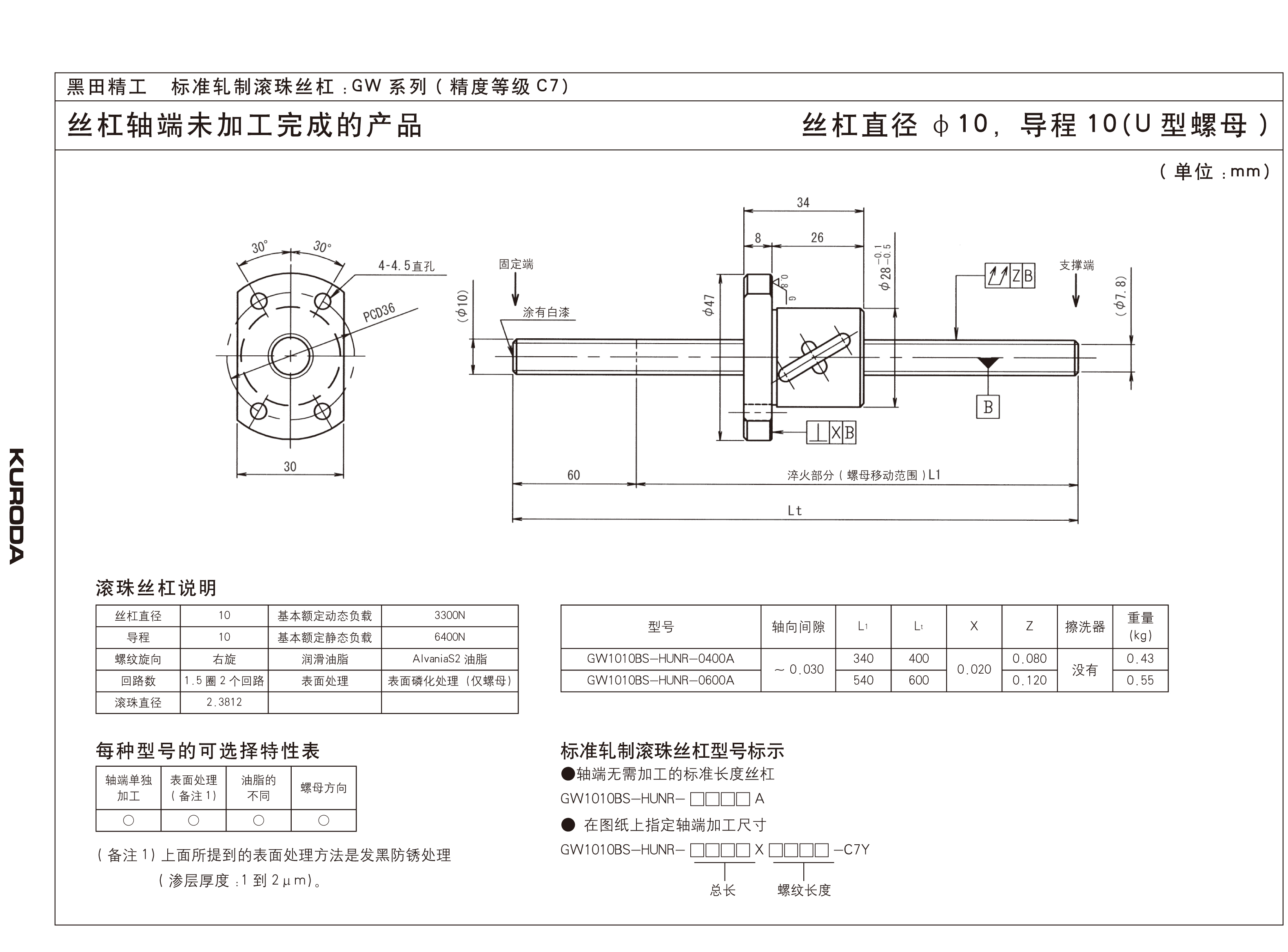 轧制滚珠丝杠具有较高的传动效率,所需力矩改为普通丝杠的1/3