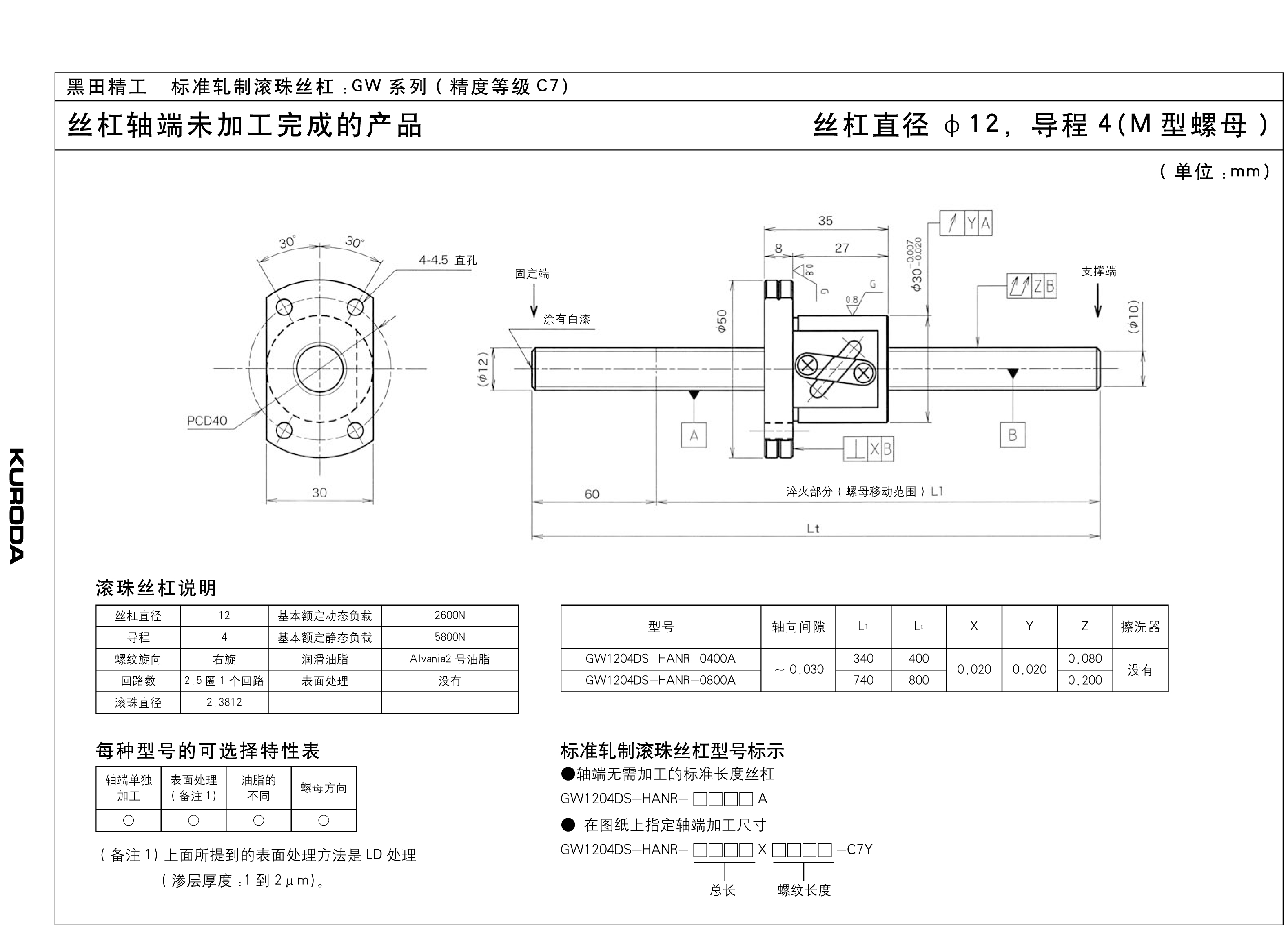 轧制滚珠丝杠具有较高的传动效率,所需力矩改为普通丝杠的1/3