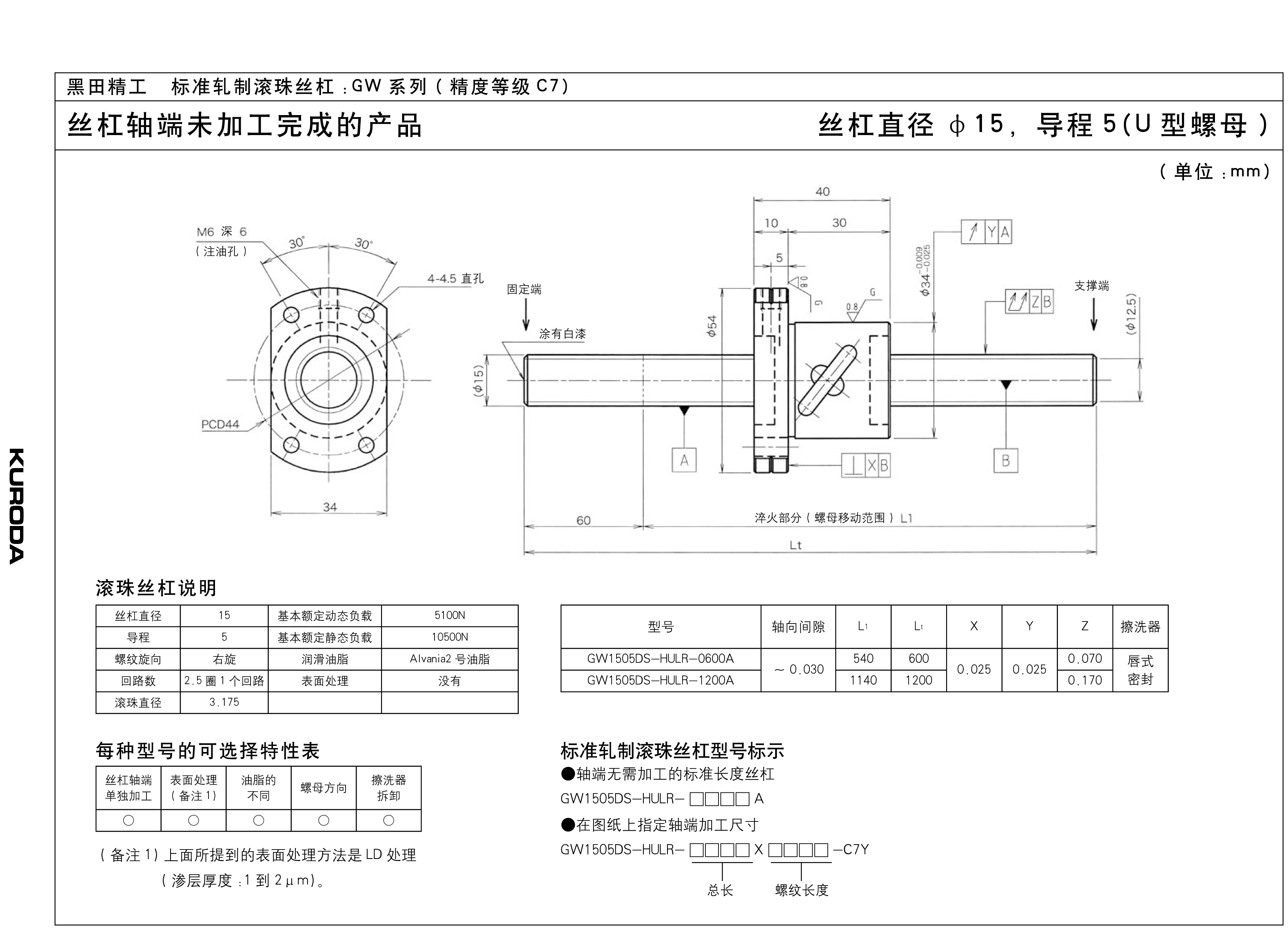 轧制滚珠丝杠具有较高的传动效率,所需力矩改为普通丝杠的1/3