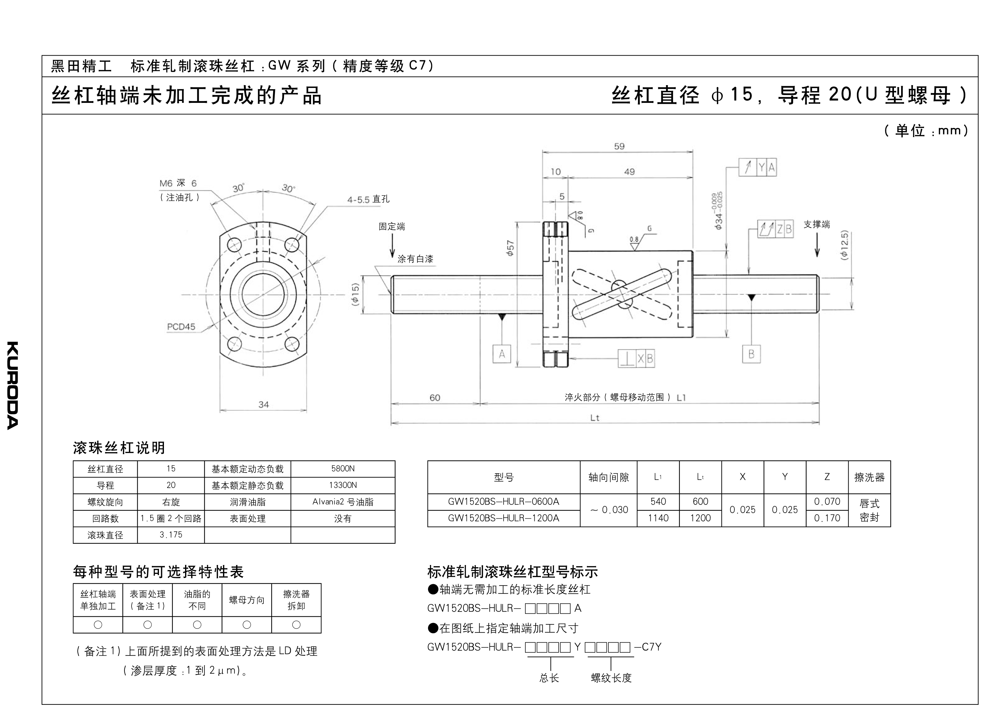 轧制滚珠丝杠具有较高的传动效率,所需力矩改为普通丝杠的1/3